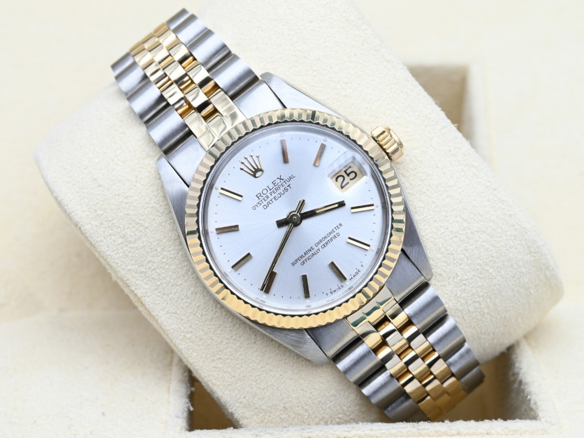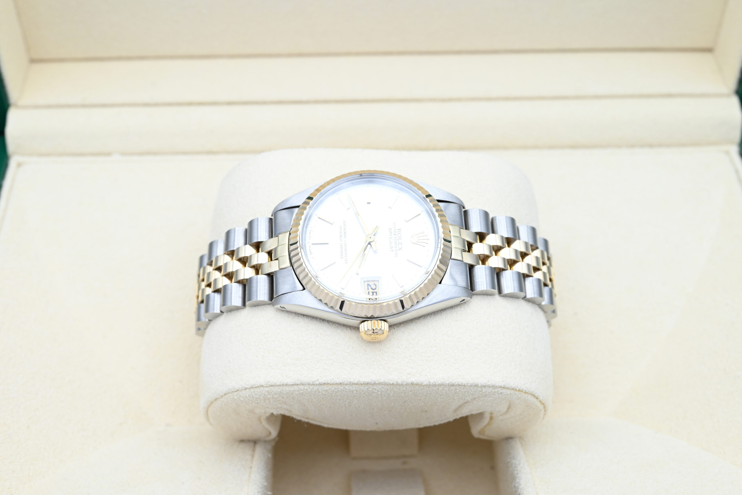 Rolex Datejust 6827 from 1982 with the silver dial in excellent condition, including the original box and papers.